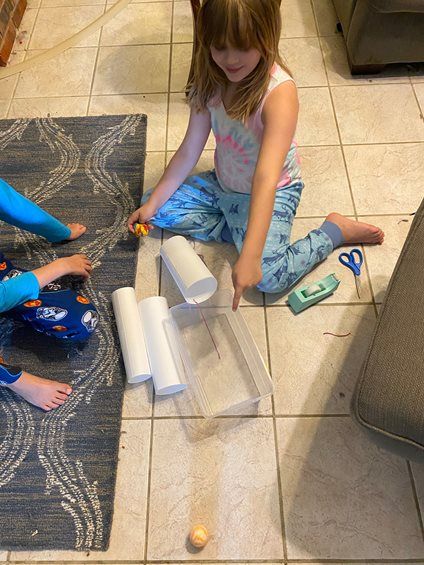 My 7-year-old tuned in to the story about inclined planes and raced around the house looking for examples. She surprised me with how she set up her inclined plane, opposite of how I would have done it.